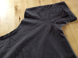 Plan był prosty- skrócić rękawy, powiększyć dekolt (w tej kwestii trochę przesadziłam;) ) i dorobić jakiś przód!